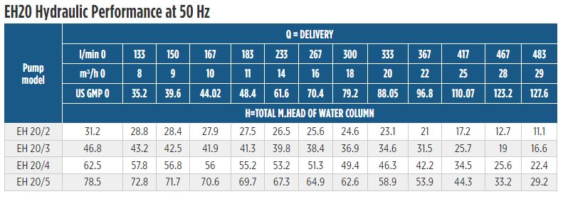 The EH 20, multi-stage booster pump is designed to meet your pressure boosting needs. The stainless steel construction offers high performance in a wide variety of applications. The EH Series is offered in five flow rates and different horsepower sizes in 1-phase or 3-phase to make sure you have the right pump to fit your application.